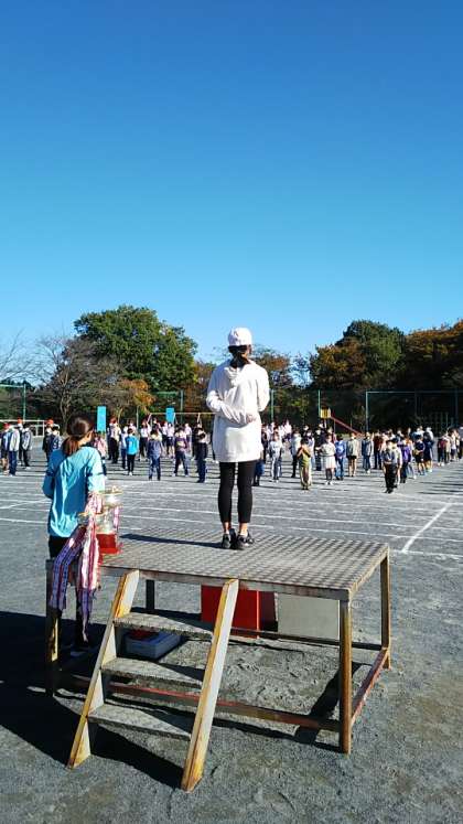 [運動会全体練習]続けて閉会式の練習もします。得点発表、どちらが勝つのかな?