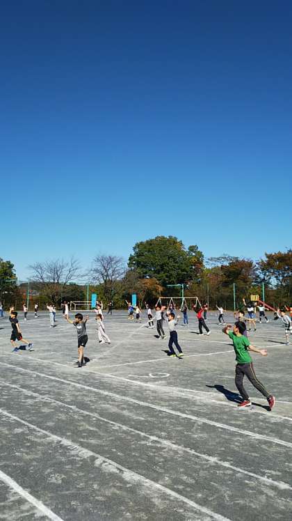 [3年生4年生運動会練習]体育着は洗濯のため持ち帰っていて、色とりどりの服ですが、校庭での様子をお伝えします。