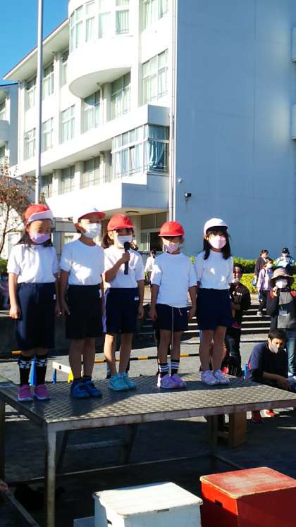[開会式]かわいらしい「はじめの言葉」、しっかりとした「児童代表の言葉」が続きます。