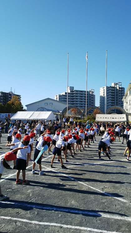 [準備運動]まずはしっかりとラジオ体操をして体を動かします。