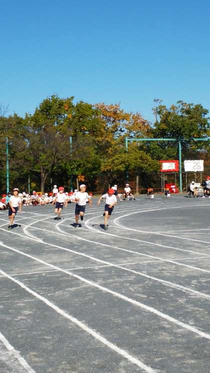 [4年生80m走]80m走も2回目。コーナリングも上手にこなす4年生です。