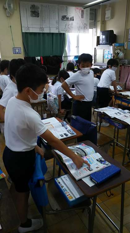 [5年生社会]一度に何千台もの自動車を船に積み込むことが分かりました。プロのドライバーが車間10cmで短時間に積み込むと知りました。さらに学習のまとめのために意見交換しています。