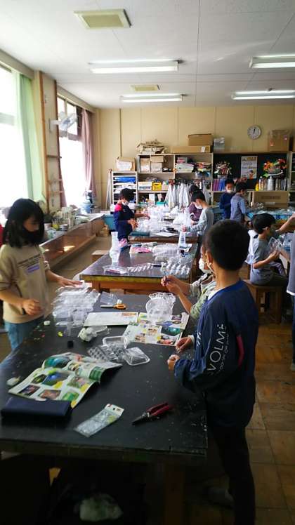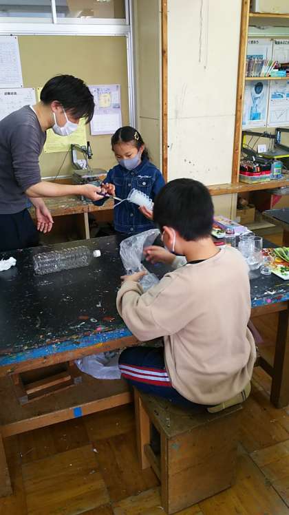 [3年生図工]暗いところでライトを当てて展示できるようにするみたいです。楽しみです。