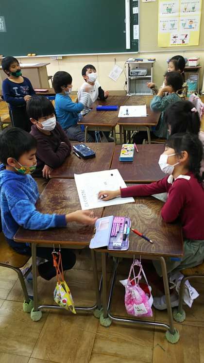 [2年生生活]とても楽しそうな声が聞こえてきましたので教室を覗きました。秋をさがしに行った時に拾ったドングリで遊んでいます。