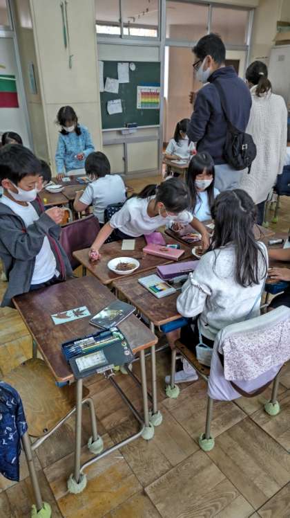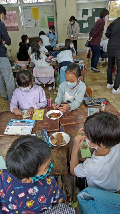 (思い思いに気に入った葉っぱを選んでしおりにします)