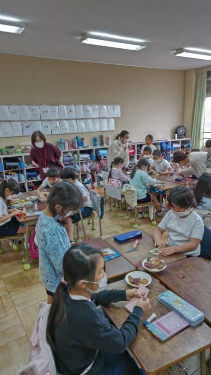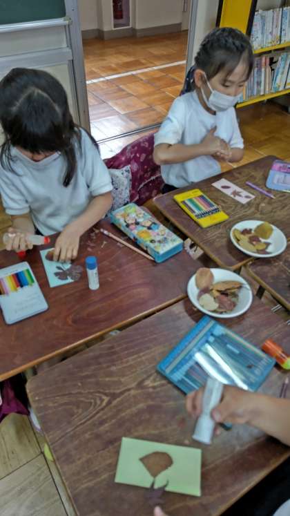 (葉っぱのまわりに色鉛筆で色付けしてもOKです)