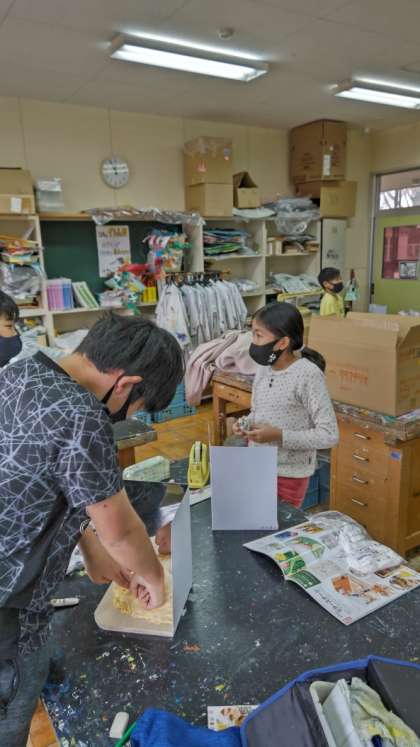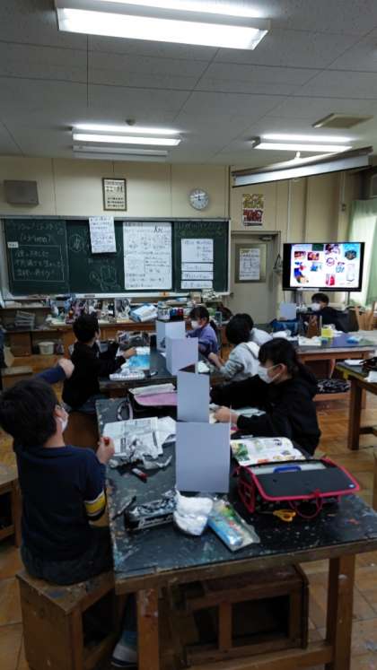 [5年生図工]「ミラクルミラーステージ」の制作中です。鏡を生かしてどんな表現ができるでしょうか。