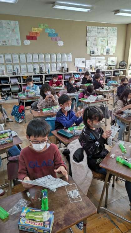 [3年生理科]先生の話をよく聞いて、説明書をよく読んで、丁寧に組み立てていきます。