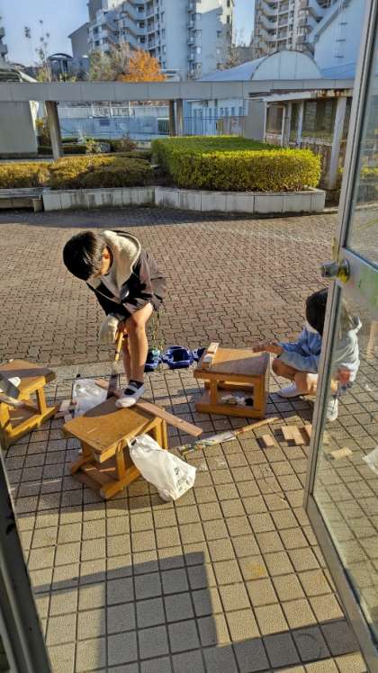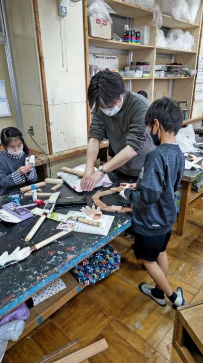 [4年生図工]切った木を組み合わせて楽しく使える伝言ボードを作っていきます。