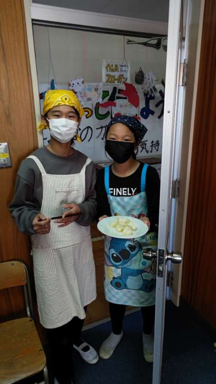 [6年生家庭]6年生がちょうど検食の時間に調理実習した「粉ふきいも」を届けてくれました。おいしかったです。ごちそう様でした。