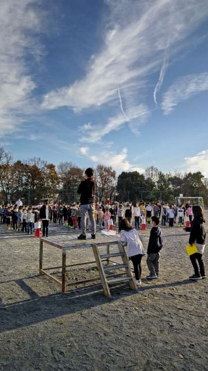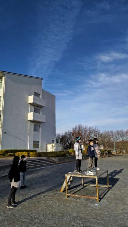代表委員会がルールを説明しています。校庭や中庭にかくされた「しもたろうが描かれたカード」を見つけ出します。