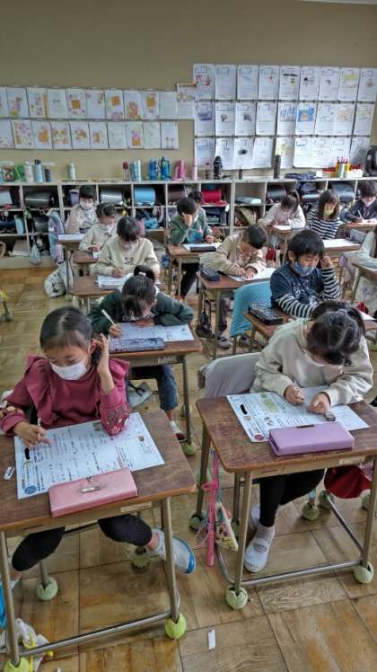 [2年生国語]テスト中です。シーンとした教室です。私も静かにそっと歩きます。