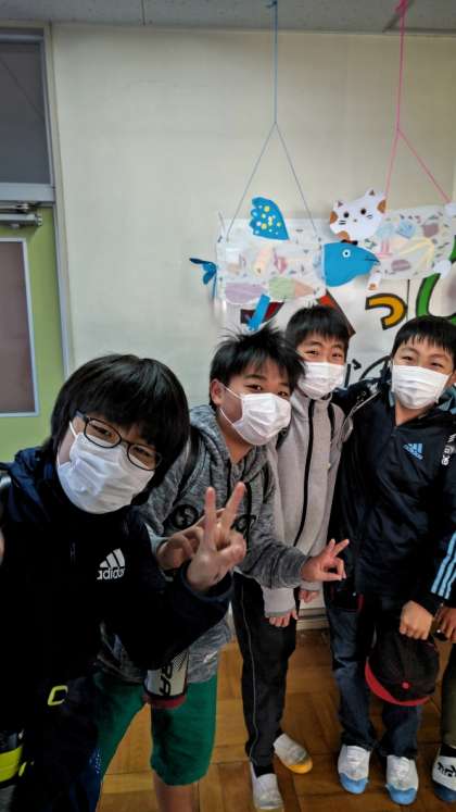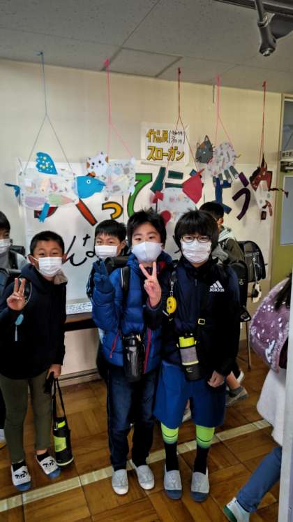「おはようございまーす」みんな元気に挨拶します。いつもの下柚木小の朝です。