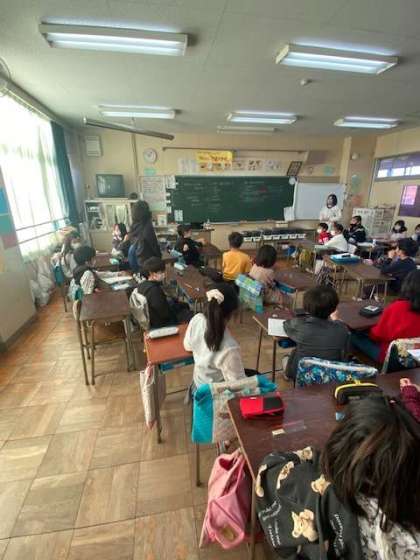 運動会、学校林で一緒に活動した3年生に楽しんでもらえるように遊びやルールについて話し合っています。