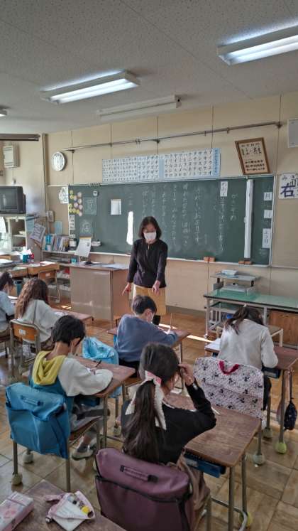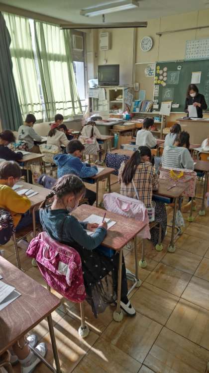 [2年生国語書写]書き初め展の作品清書に取り組んでいます。みんな集中しています。