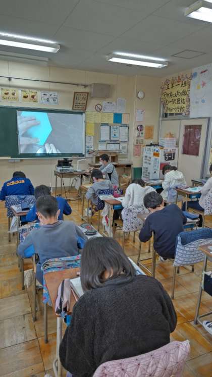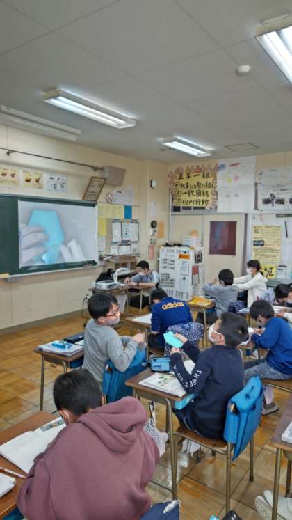 [5年生算数]各自の手元にある色紙で作った正六角形の角を測っているところです。