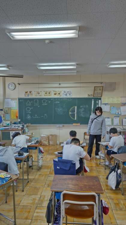 [5年生算数]「いろいろな正多角形をかこう」が今日のめあてです。手元にはコンパスと分度器があります。