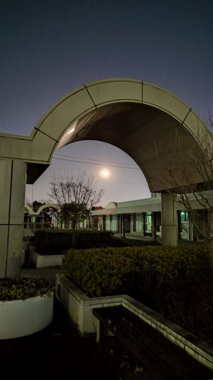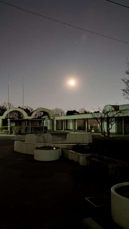 夜になり満月が上がってきました。明るい冬の夜空です。今日の満月は今年一番小さな満月、つまり一番地球から距離が長い満月だそうです。ウルフムーンというそうです。