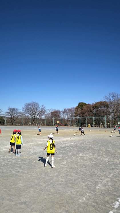 [2年生体育]反対側から一斉にドリブルしながら相手側陣地に入り、決められた位置までの間にシュートを打ちます。