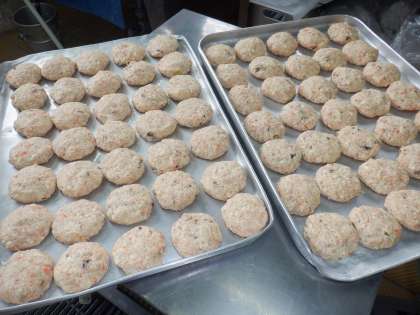 天狗ご飯は赤米でご飯をほんのり色づけし天狗の帽子を黒ごまで表現、山の幸和え は高尾山の滝をしらたき、山の幸をキクラゲで表現した和え物、高尾揚げはもみじの紅葉をもみじ型のかまぼこを入れたあんをかけ仕上げました。