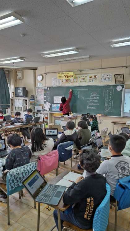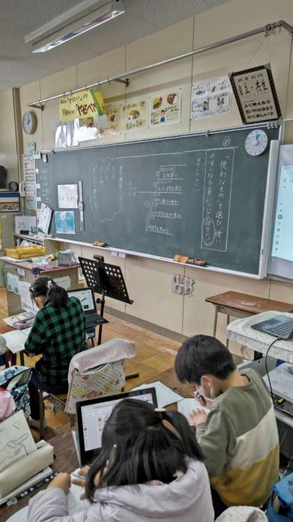 [4年生国語]身の回りの「便利なもの」を見つけて発表会をするようです。パソコンを使って調べています。