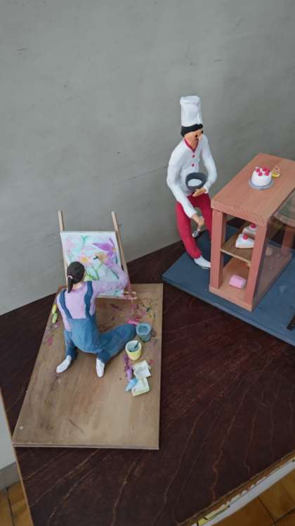 ミニギャラリーもいよいよ最後の展示です。6年生「未来の私」です。なかなかの力作ですね。