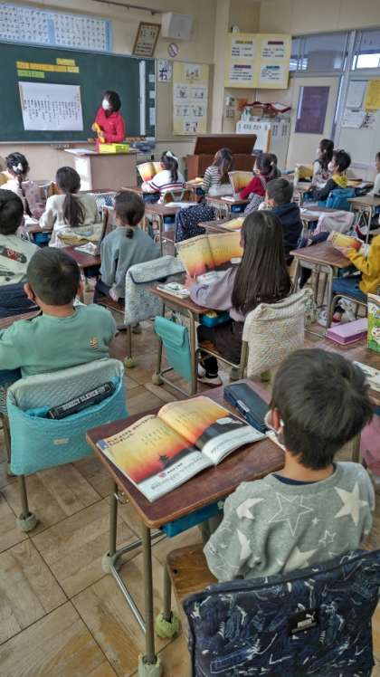 [2年生音楽]今日の曲は「夕やけこやけ」です。八王子が誇る童謡です。作詞の中村雨紅さんは八王子の出身です。