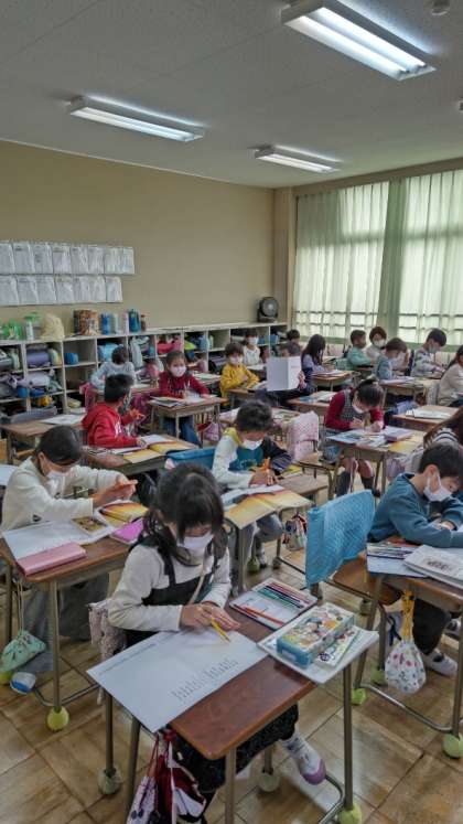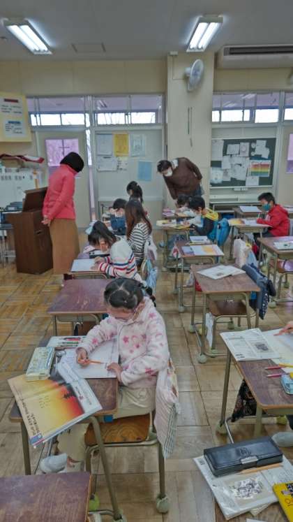 (歌詞の表す様子を絵に描き、オリジナルの教科書をつくります)