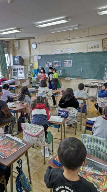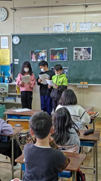 [3年生国語]教室で写真を使ってなにかの発表会をしている様子を見かけました。途中から見学します。