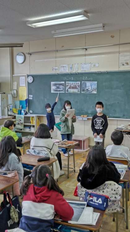 [3年生国語]「町の行事について発表しよう」という学習です。日本各地で行われている年中行事について調べたことを発表しています。