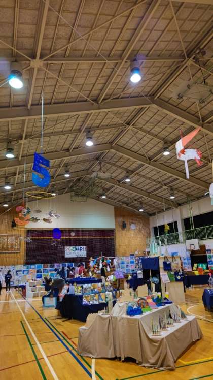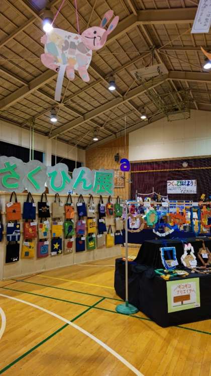 作品展の準備ができました。子供たちの力作が体育館にたくさん並べられています。令和3年度作品展「つくって伝えよう〜みんなのガッツとその気持ち〜」いよいよ明日開催です。