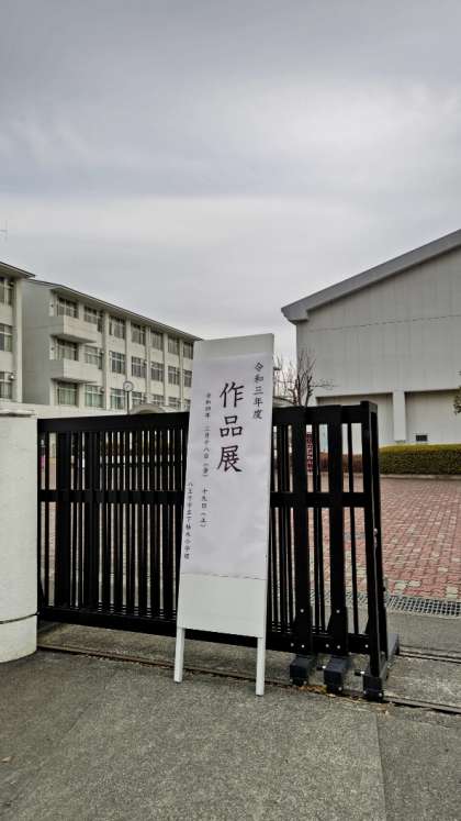 作品展2日目です。今日は一日、保護者鑑賞日です。曇り空の寒い天候のようです。体育館内は暖房も設置しましたが、換気もしておりますので暖かくしてご来場ください。
