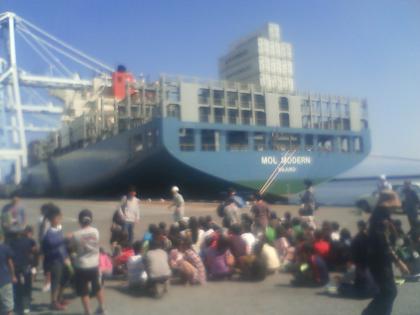 この船に六千個ものコンテナを積み込むことができるそうです。