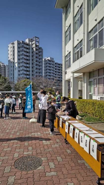 今日は今年度最後の「青少対クリーン作戦」です。「笑顔で元気に!クリーンな町 下柚木」をスローガンにみなさん集まりました。