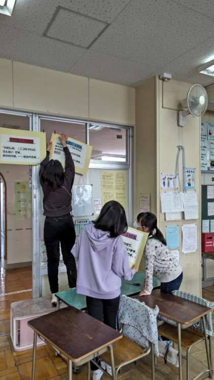 [6年生奉仕活動]6年生がそれぞれの先生について卒業前の奉仕活動をしています。下柚木小の伝統です。