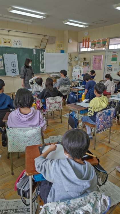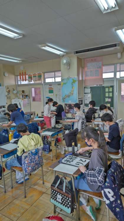 [5年生国語書写]5年生の書写も終盤です。好きな言葉を大きく堂々と書きます。5年生は4文字に挑戦です。