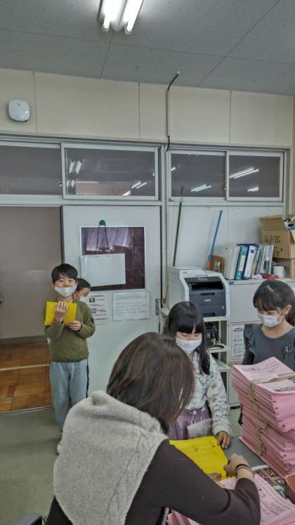 [2年生九九マスター]一時中断していた2年生の「九九マスター」ですが再開し、毎日中休み・昼休みに子供たちが校長室、職員室にやってきます。算数の先生、副校長先生、校長の合格サインが揃えば「免許皆伝」です。がんばろう!