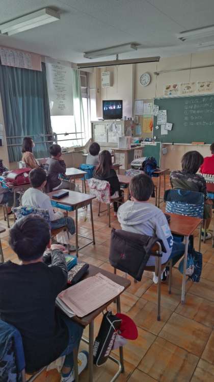 「いじめゼロ発表」今日は5年生の発表でした。素敵な動画を作ってテレビで流してくれました。