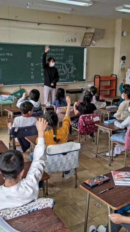 (3年生は中休みから帰ってきたところです。手を洗った人!はーい)