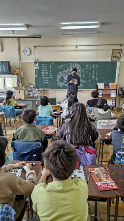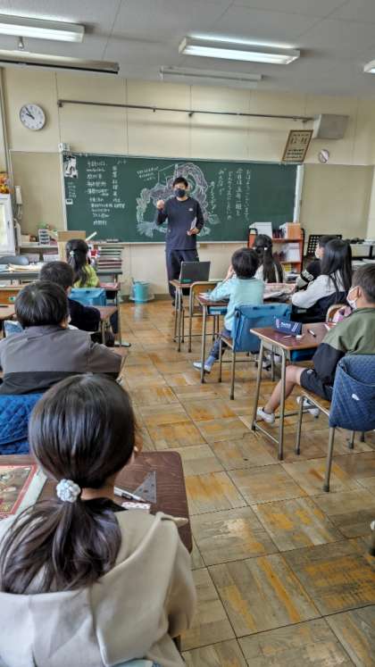 [5年生学活]5年生は今年使うドリルやノートを配っています。自主学習ノートの使い方を先生から聞きました。