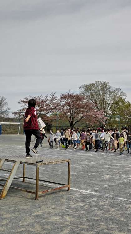 (続いて行進の練習です。タイミングを合わせて「左、右、左、右」)