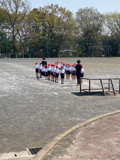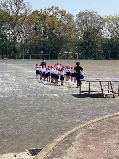 初めての外体育です。運動するには良い気候になってきました。