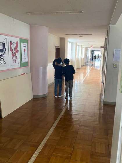 体育館でお話ししてもらうには、入り口の数段の階段も重要です。