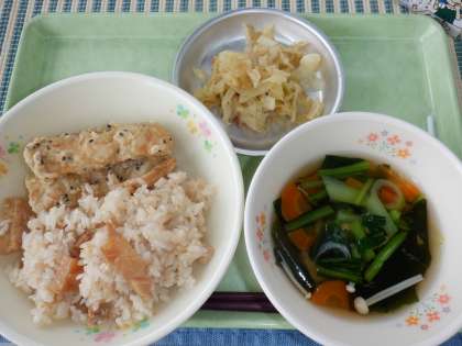 今日は今が旬の たけのこを使った たけのこご飯を作りました。