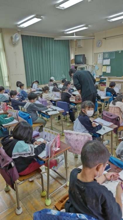 [2年生国語]漢字ドリルを使って新出漢字の学習中です。丁寧に正確に書きましょうね
