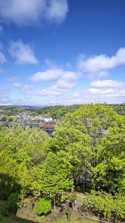 山の稜線がくっきり。青い空に白い雲。今日は気温がぐんと上がるようです。立夏はまだ先ですが、初夏の雰囲気です。