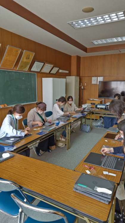 パソコンの保護フィルム貼り、今日も保護者の皆様にご協力いただきました。3日間で全8クラス分の作業を完了していただきました。
