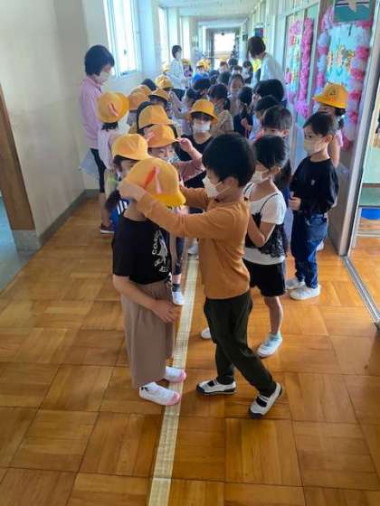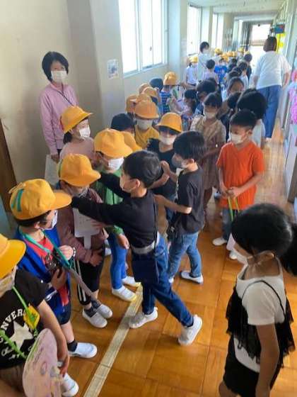 今朝の朝会は、雨で延期になっていた1年生を迎える会です。