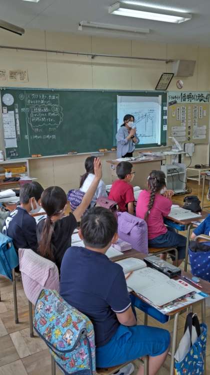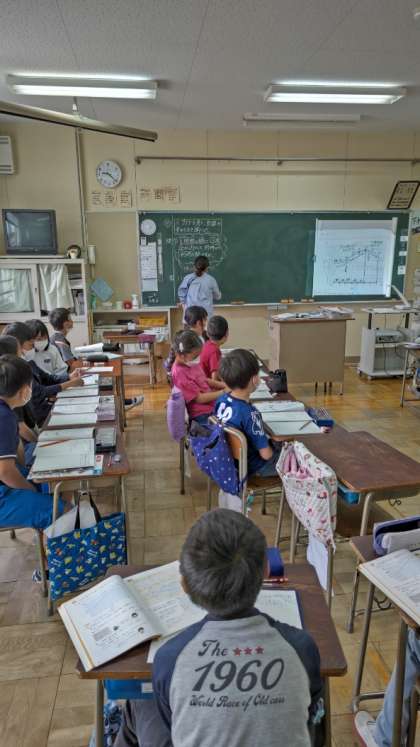 [4年生算数]「折れ線グラフ」の学習です。グラフをもとにして気温の変わり方を調べています。