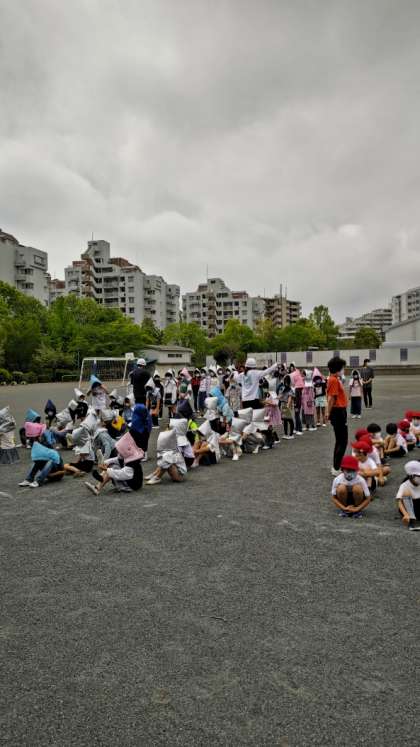 [避難訓練]地震はいつ起きるかわかりません。全員しっかり命を守る行動ができるように、これからも備えていきましょう。